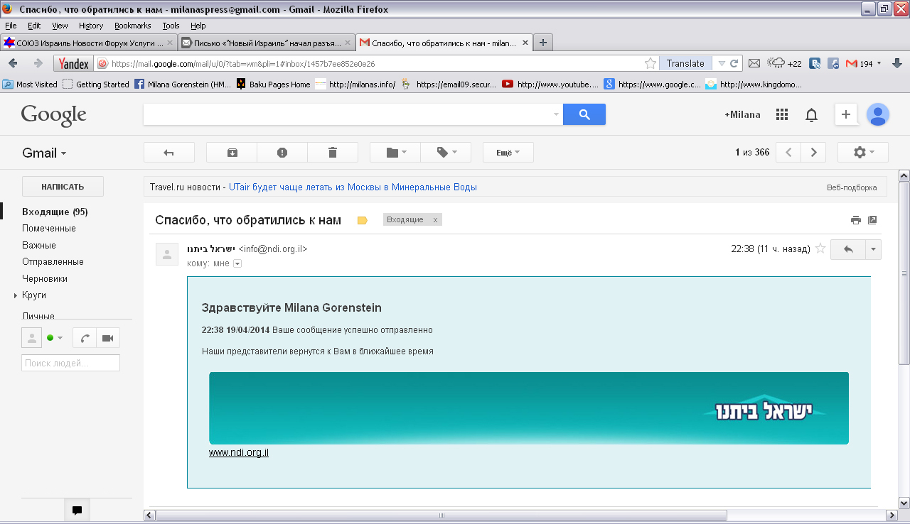 Открытое письмо доставлено адресату