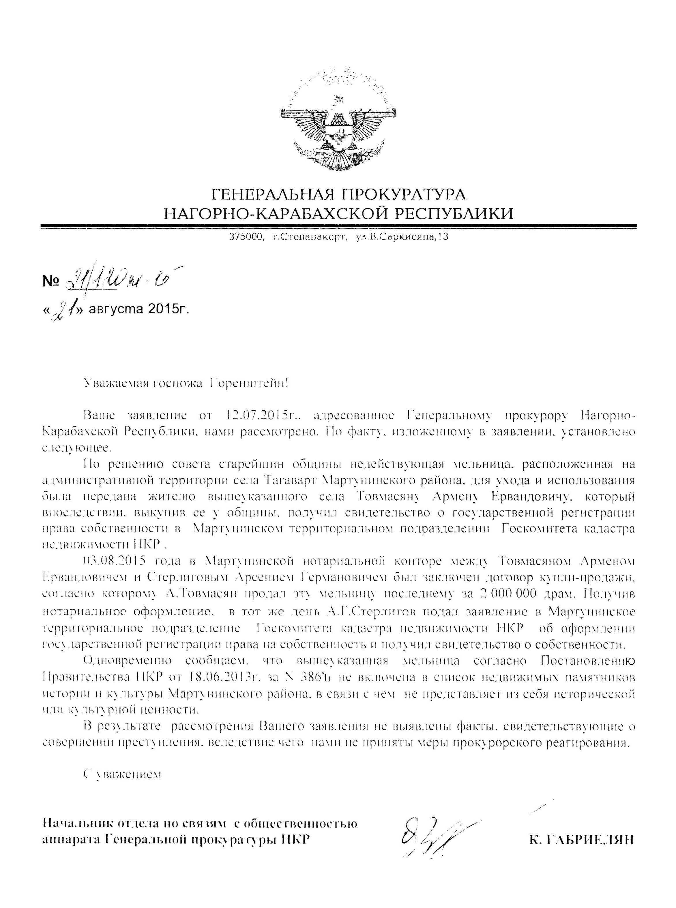 12 февраля в консульский отдел МИД АР была направлена просьба о смене бессрочного Общегражданского паспорта СССР на паспорт Азербайджанской Республики. Г-жа Горенштейн указала, что для этой цели она готова, согласно законам Азербайджана, отказаться от гражданства Израиля.